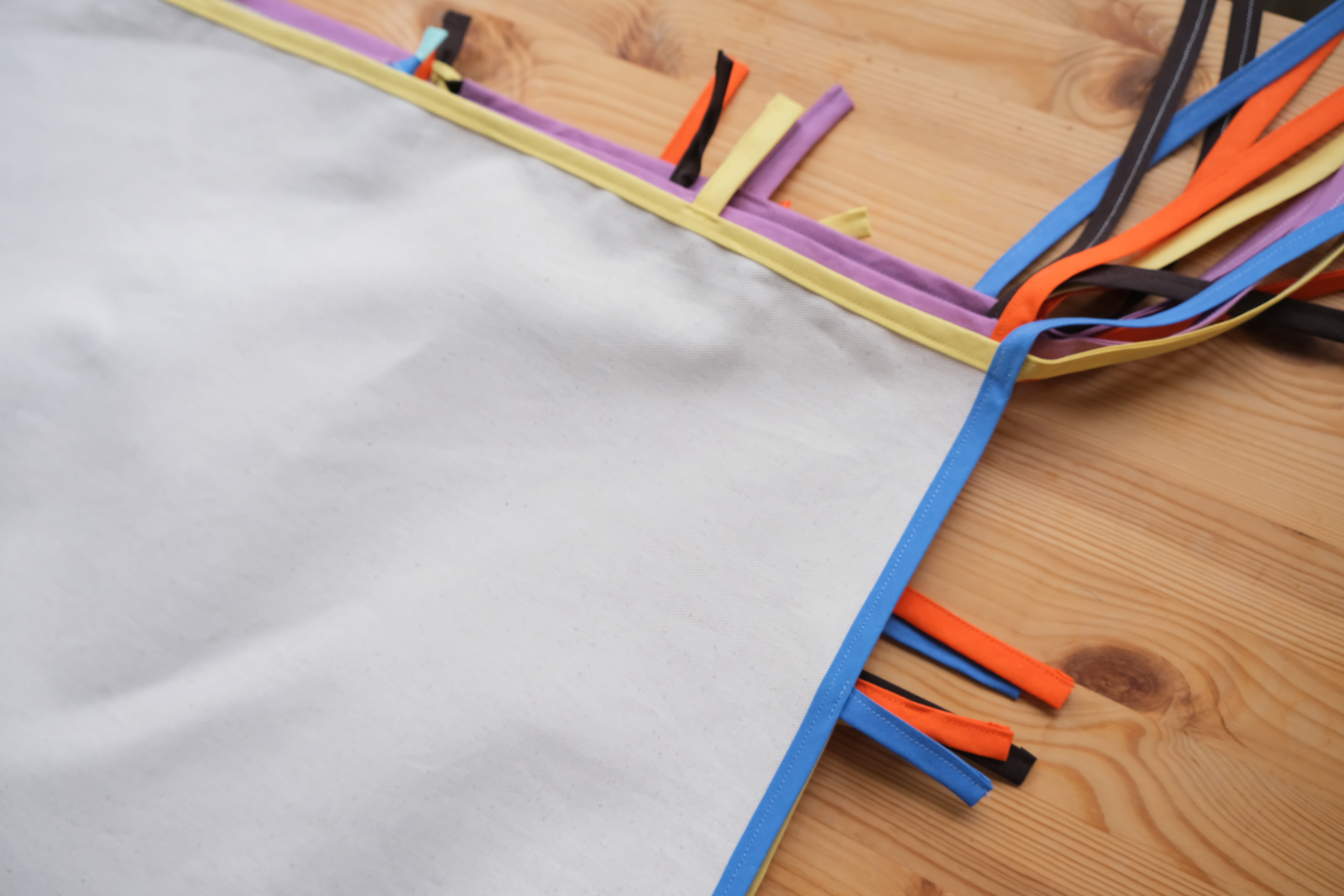 “Aggiungi un posto a tavola (Add a seat to the table)” is a fun project that reimagines the traditional apron as a versatile and playful addition to your dining experience. These aprons are not only functional but also serve as a creative tablecloth when joined together. The design features shapes that can be rearranged to create various table configurations, providing flexibility for differ- ent dining setups. Each apron can be purchased individually, allowing for customisation of length and style.